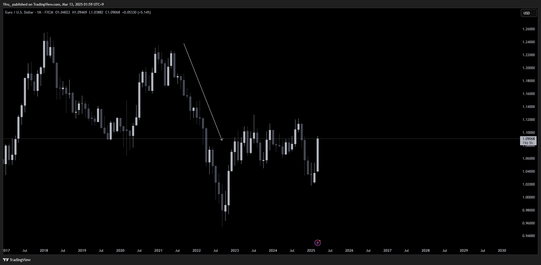 * EUR/USD ์๋ด ์ฐจํธ๋ฅผ ์ฐ๋ค.